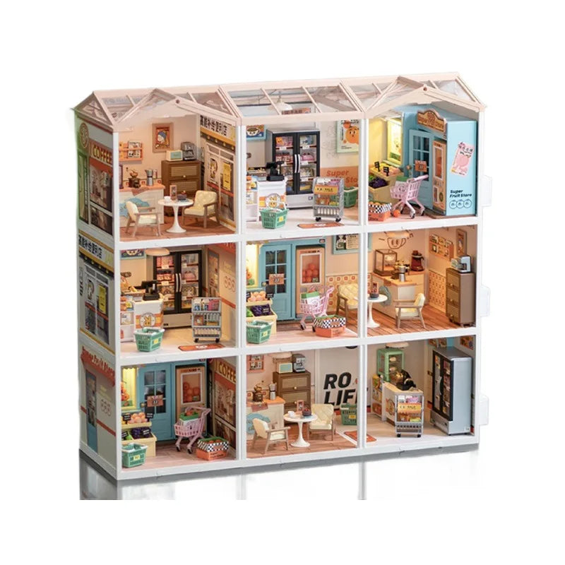 DIY Dollhouse Kit, Mini 3D House Kit with Grid Space Design, Handcraft Miniature Scene Model Toy