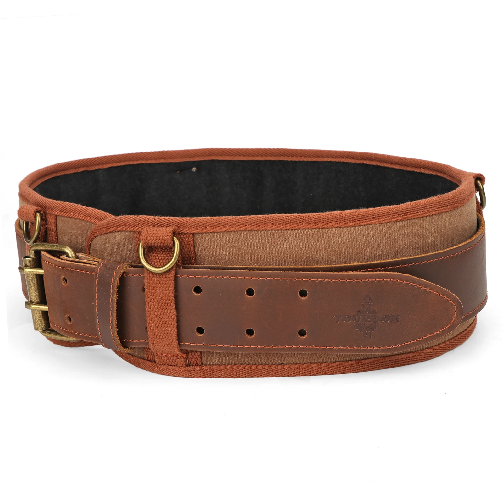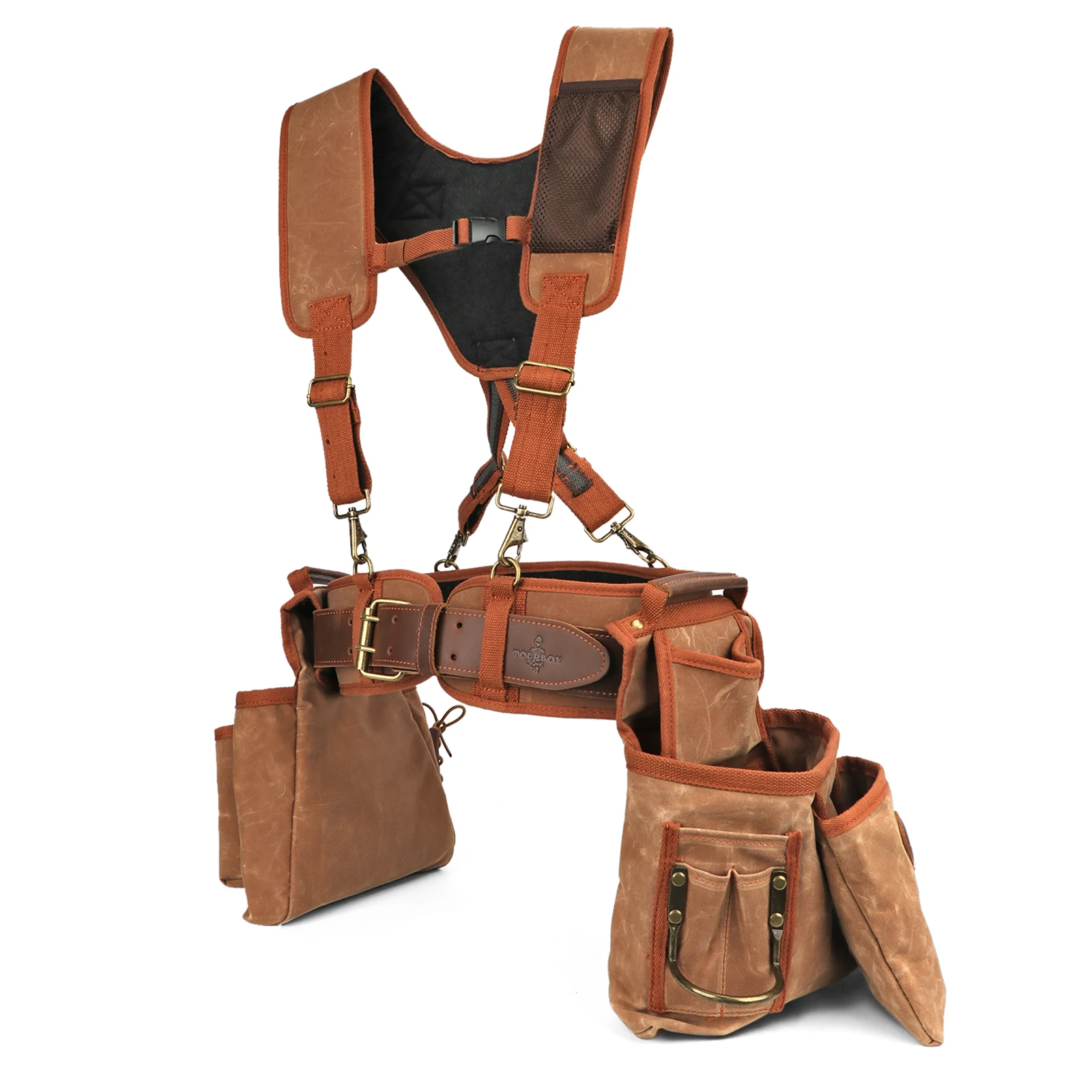 Tourbon Tool Belt with Adjustable Suspenders Padded Cooling Mesh Detachable Pockets Tape Measure Hammer Holder Framers Rig Tan
