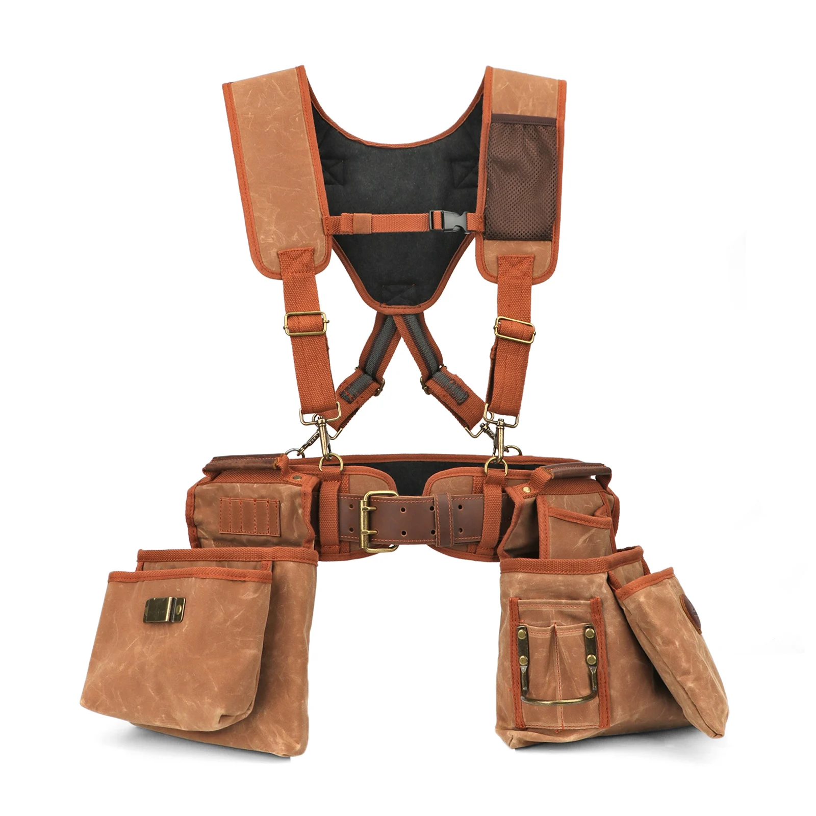 Adjustable Suspenders – A fully adjustable chest strap and leather belt help to secure attachments to your tool belt,fits waist 39" - 46", making carrying tool pouches and tools effortless.