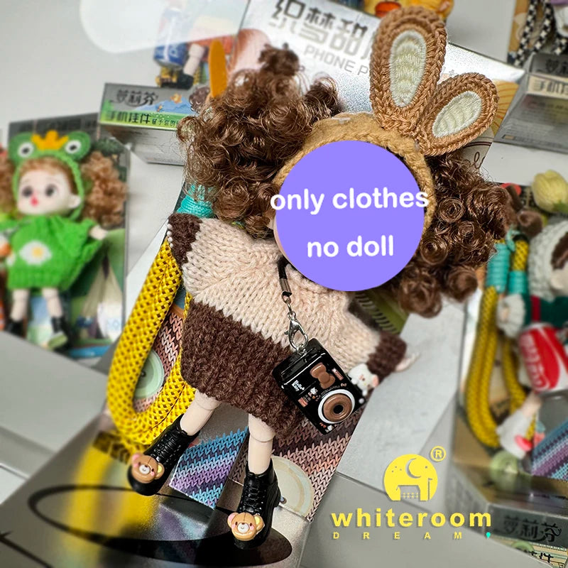 Mini BJD Doll Clothes OB11 Handmade Crochet Sweater Wool Hook Set Accessories Girls DIY Toy Accessories MobilePhone Hanging Gift